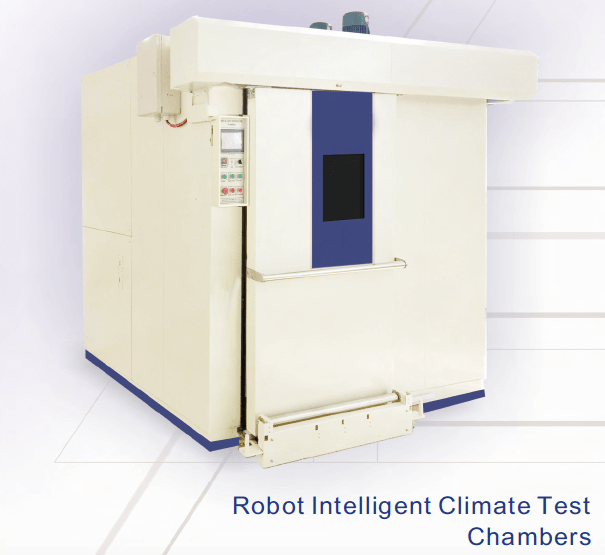 The Robot Intelligent Climate Test Chamber is a set of automatic testing equipment, which consists of intelligent control software, automatic transmission and operating the mechanism, AGV (Robot car), necessary test tools and various accessory sensors. It is designed for factory production lines, automatic testing rooms or some automatic, intelligent & low labour-demanded solutions. It is mainly used to test the products adaptive capacity and characteristic of the whole product, machine parts and materials changes or not, when the chamber replicates the environment of high temperature, low temperature, high-low temperature cycling, ESS or constant/cyclic temperature & humidity mode.